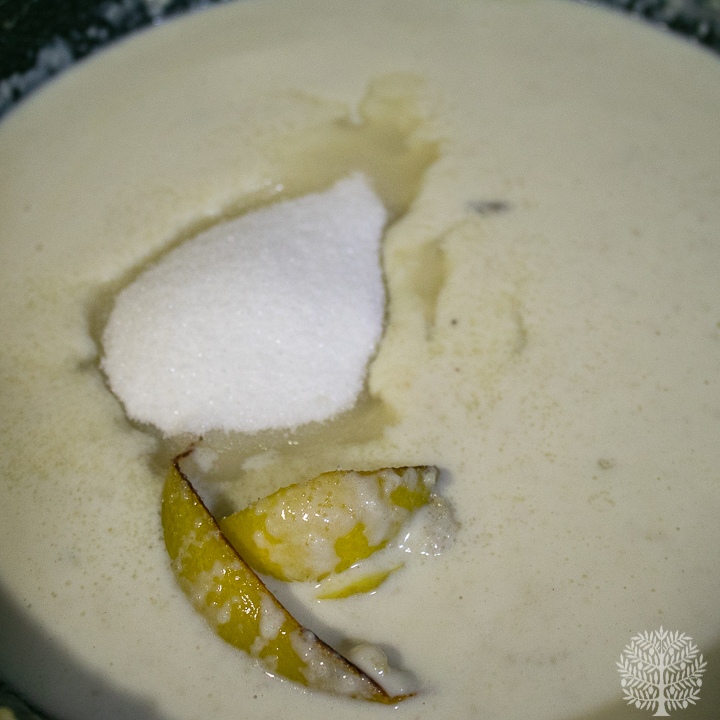 Ahora incorpora la leche, azúcar, la pizca de sal, el palo de canela y la cascara de limón y programa 10 min. 90º, vel.4, GIRO A LA IZQUIERDA.